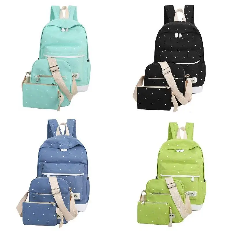 3PCS/Set Bag High Quality Ladies School Bag Casual Canvas Women Backpack Girl Student Book Bag With