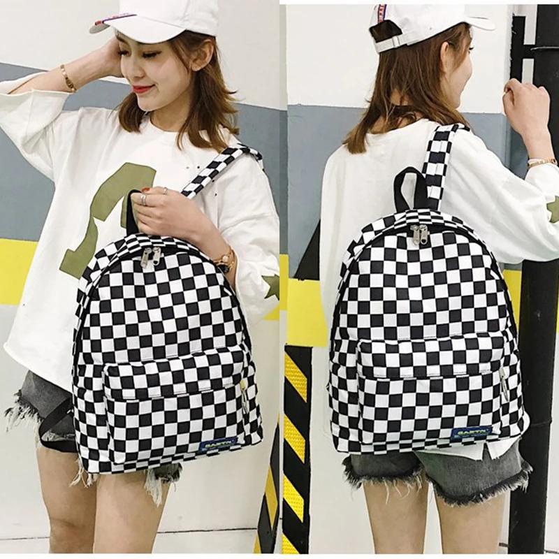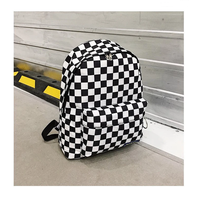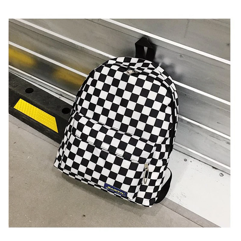 HIGH QUALITY 2019 Unisex White and Black Plaid Nylon Female Travel Daypack Laptop Backpack School Casual Rucksac
